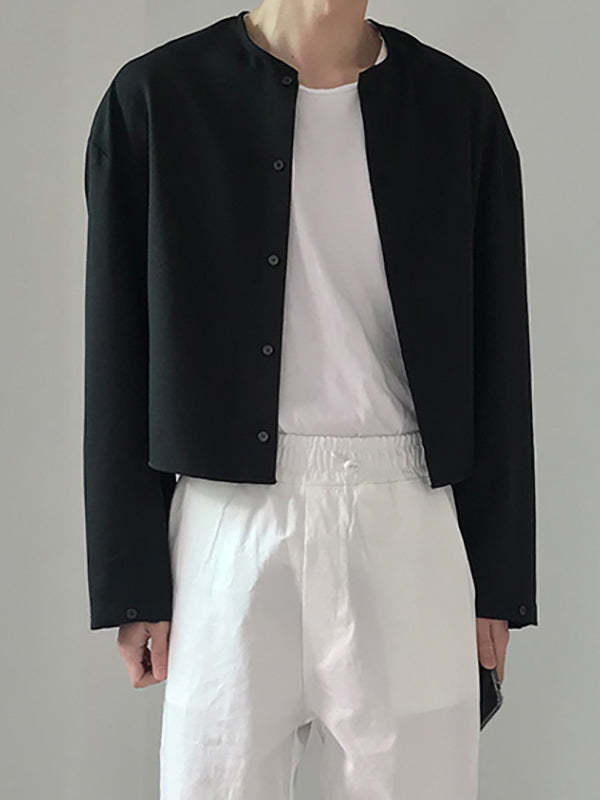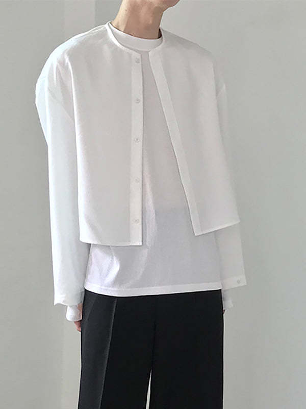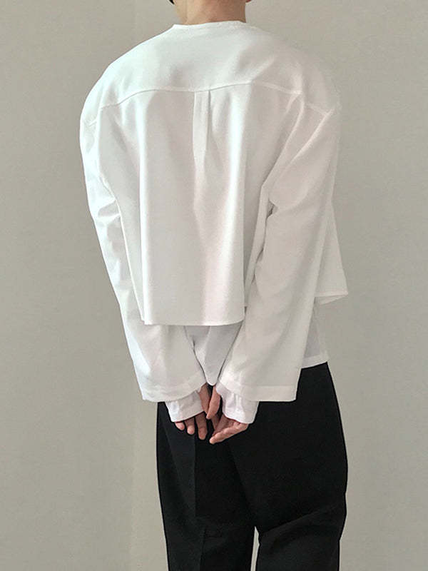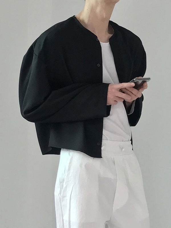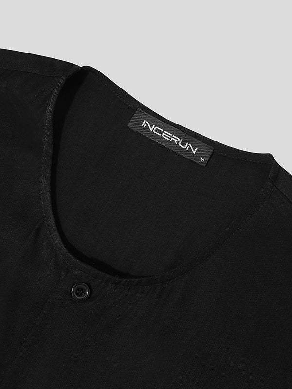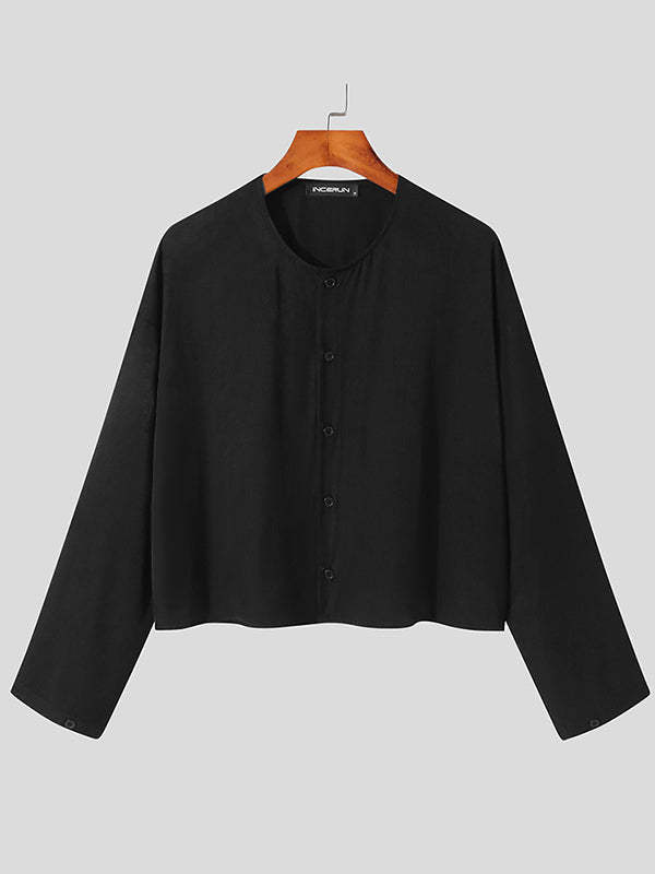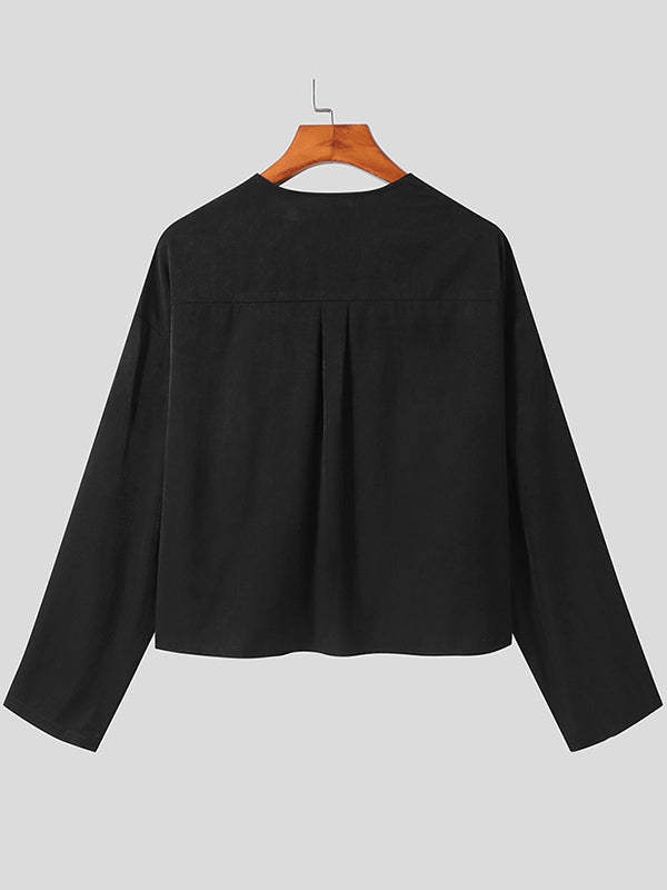Mens Collarless Loose Short Long Sleeve Shirts SKUI50497