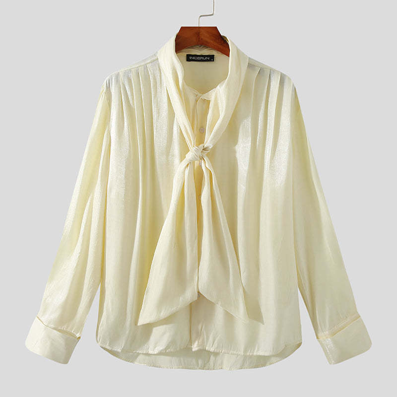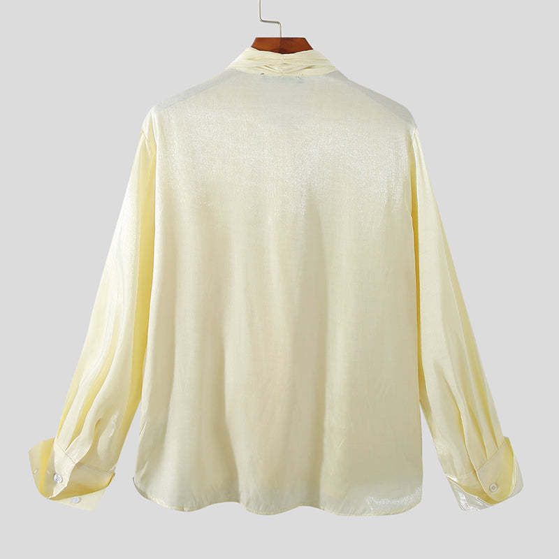 Men's Pleated Neckline Streamer Long-sleeved Shirts SKUH80501
