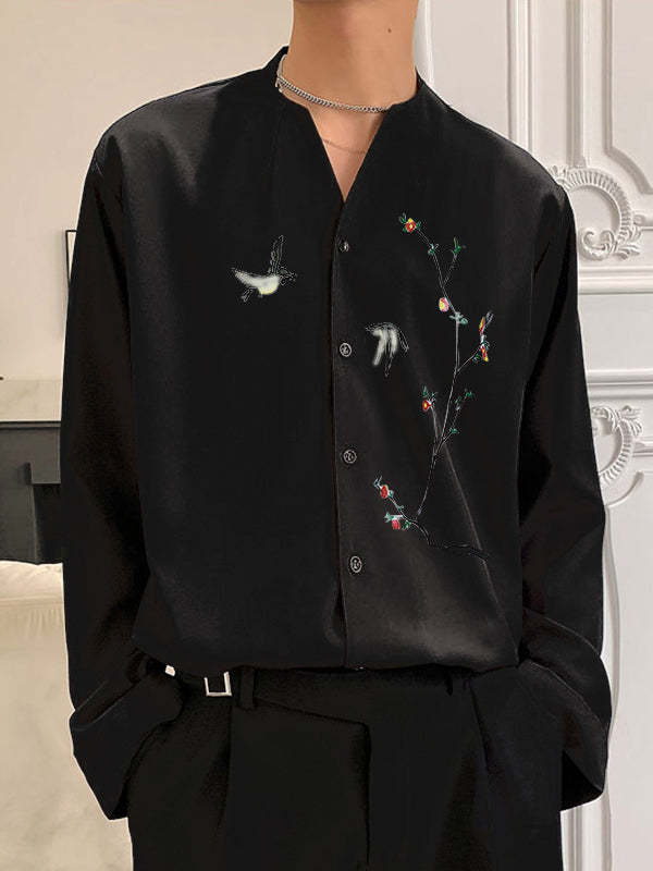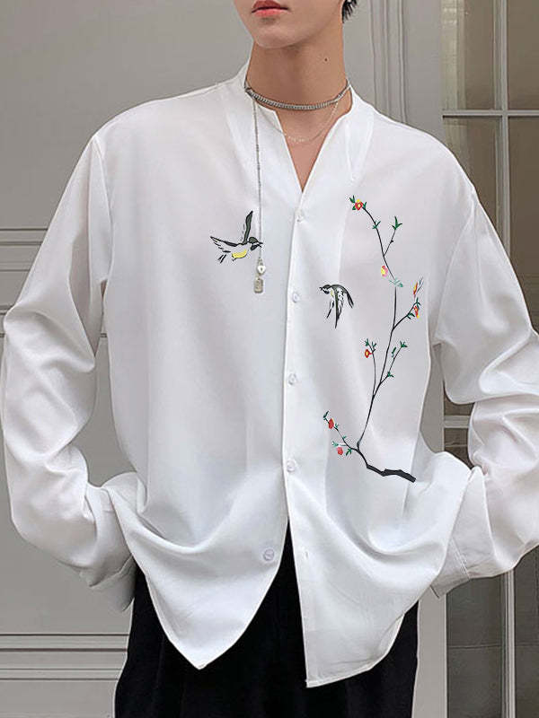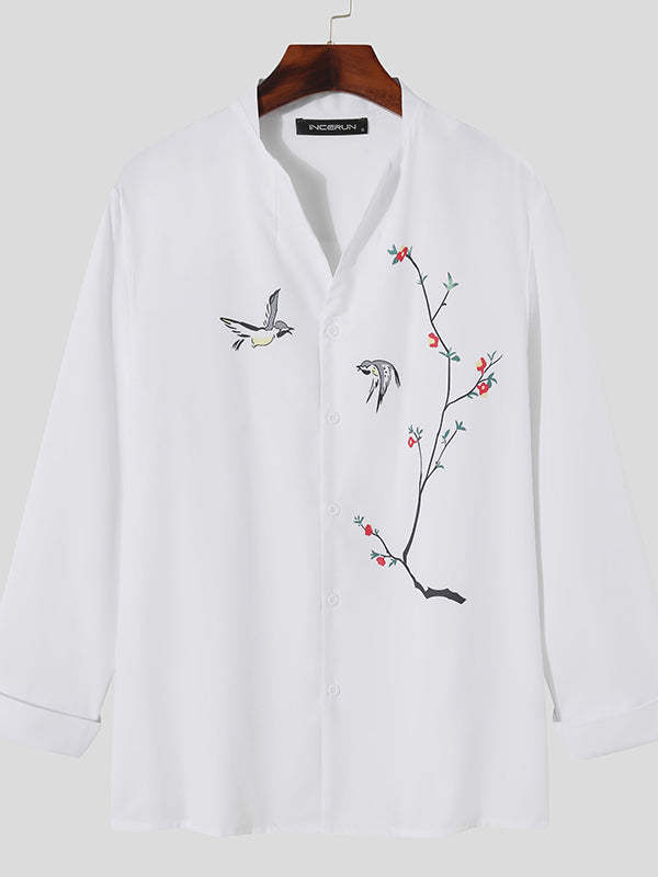 Mens Print Button Long-sleeved Shirts SKUI04378
