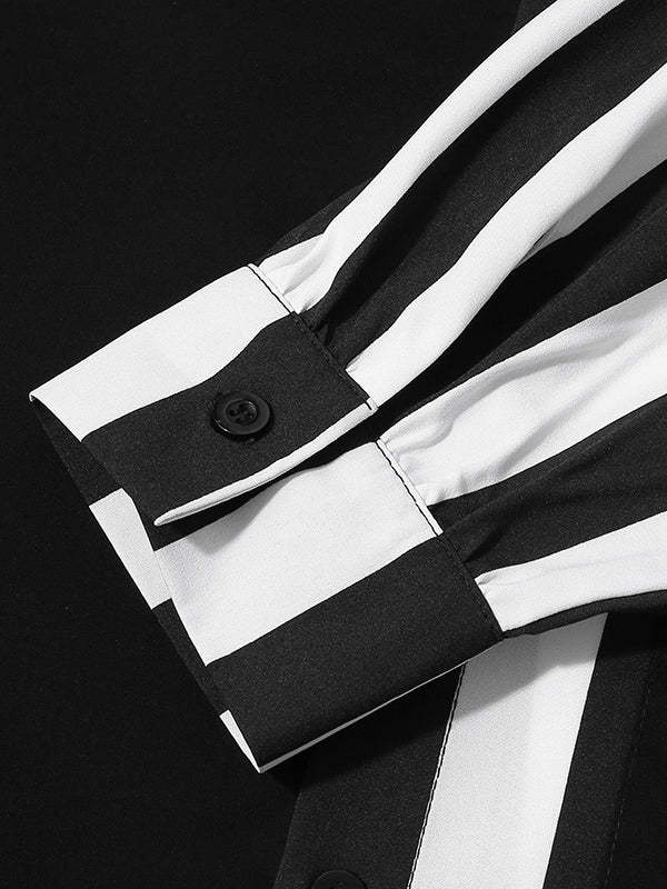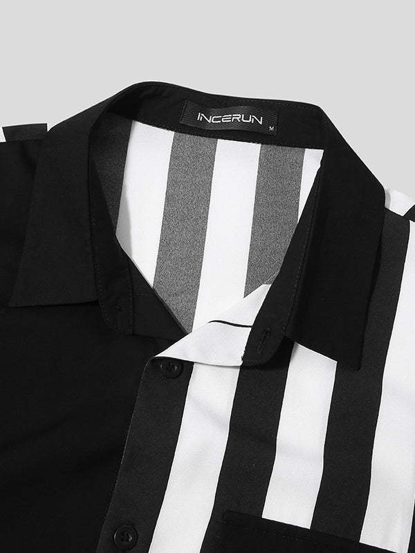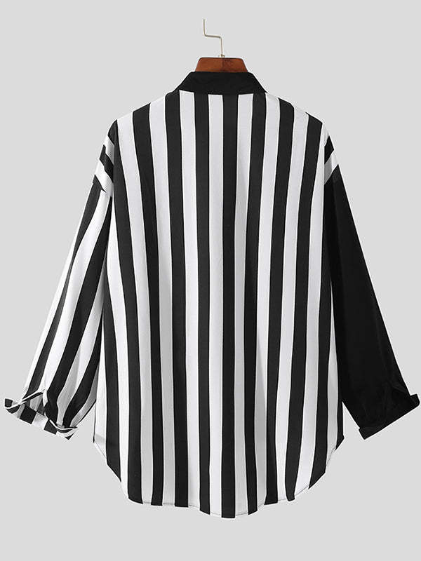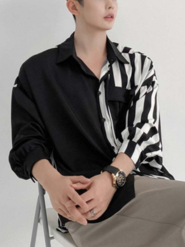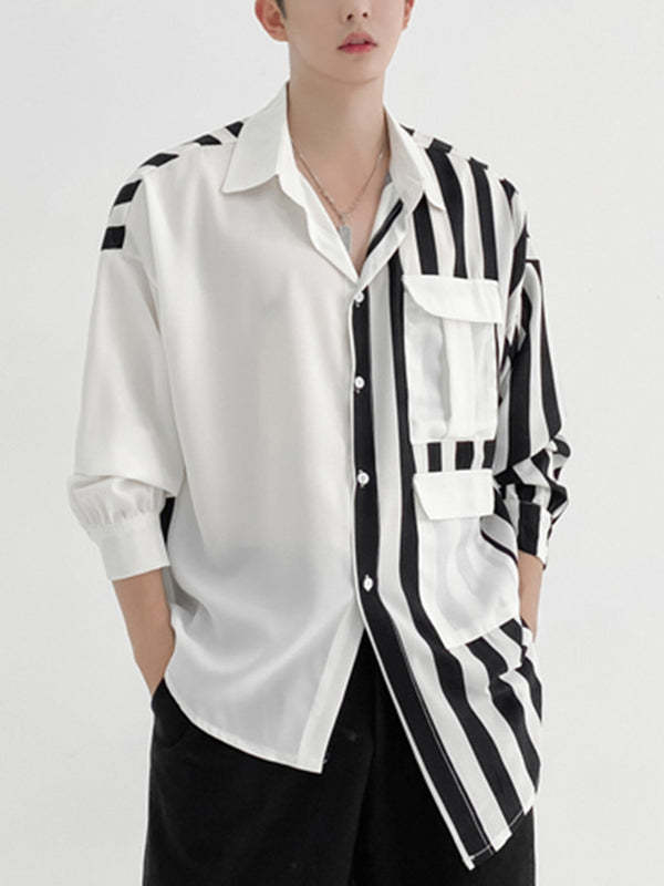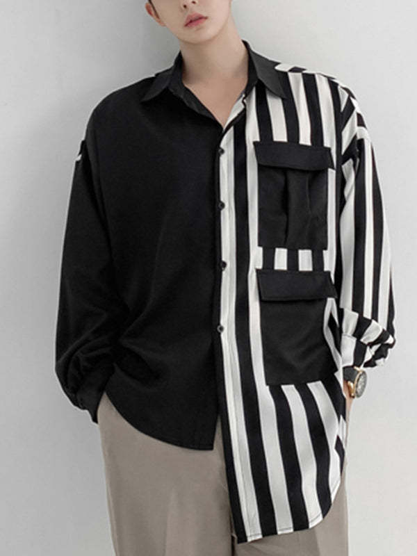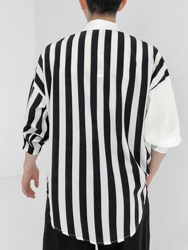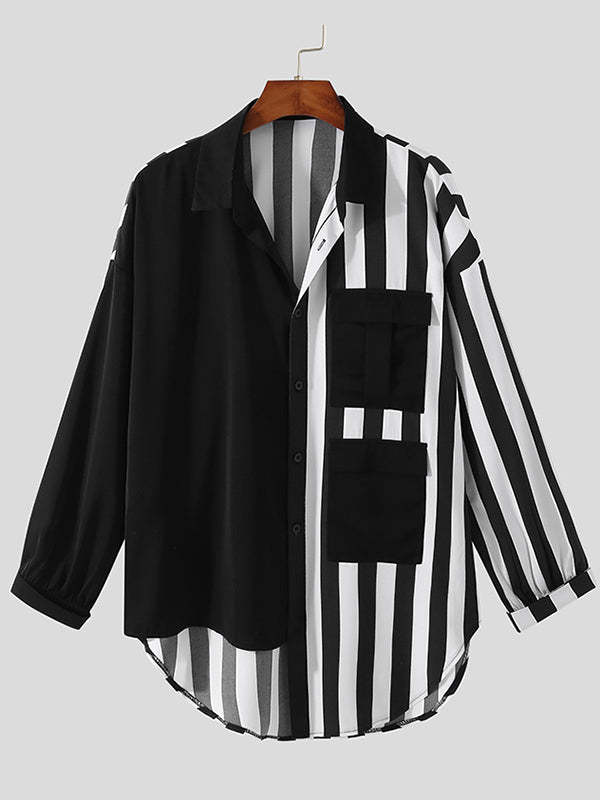 Mens Striped Patchwork Irregular Hem Shirts SKUH64693