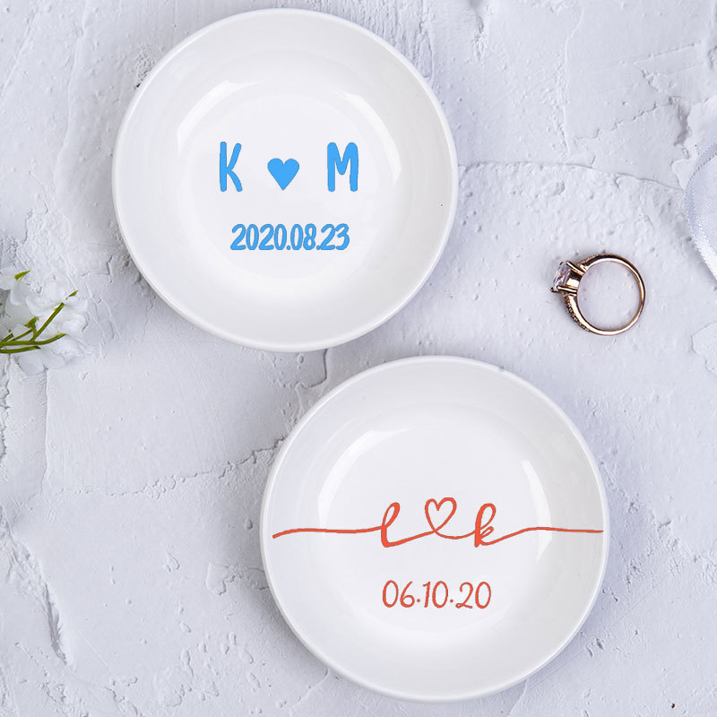 These beautiful porcelain dishes are the perfect place to store your engagement/wedding rings and other everyday jewelry. Every sticker is designed & then cut on high-quality vinyl before being permanently sealed to the dish.