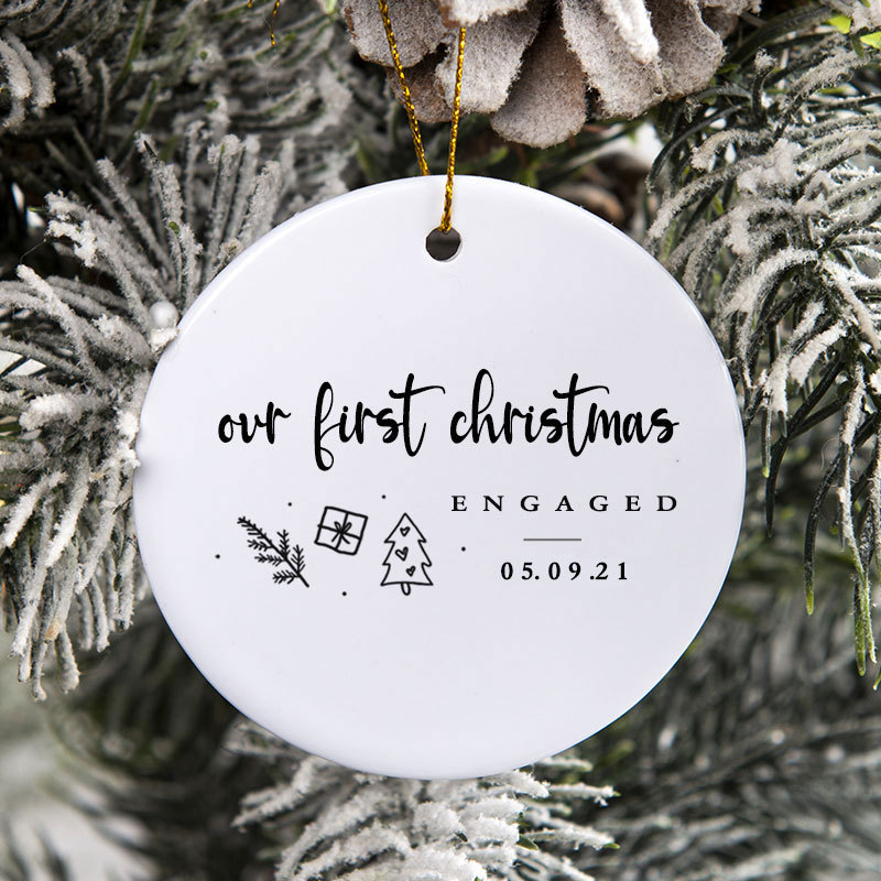 Our First Christmas Engaged with Date Porcelain Ceramic Ornament