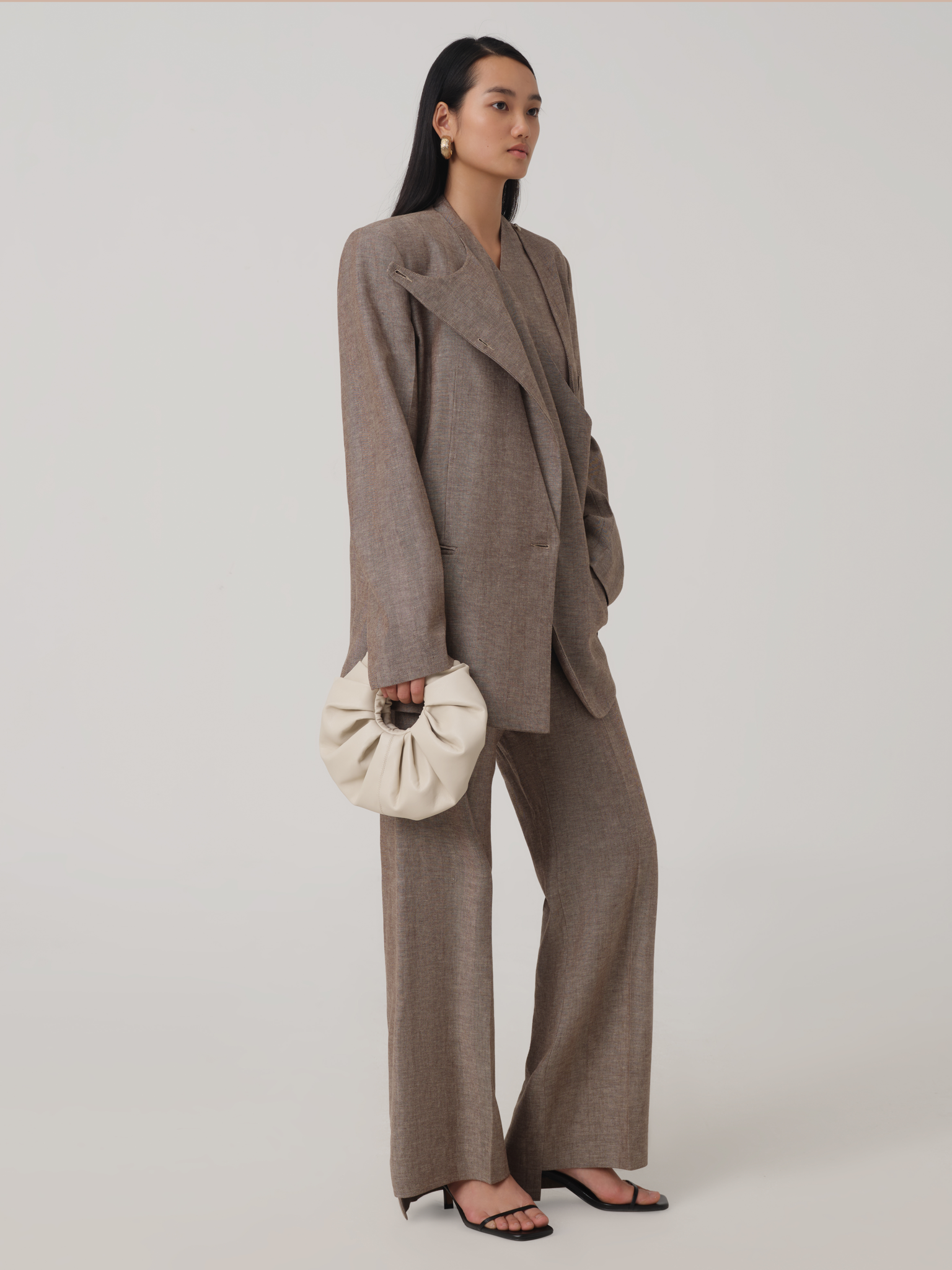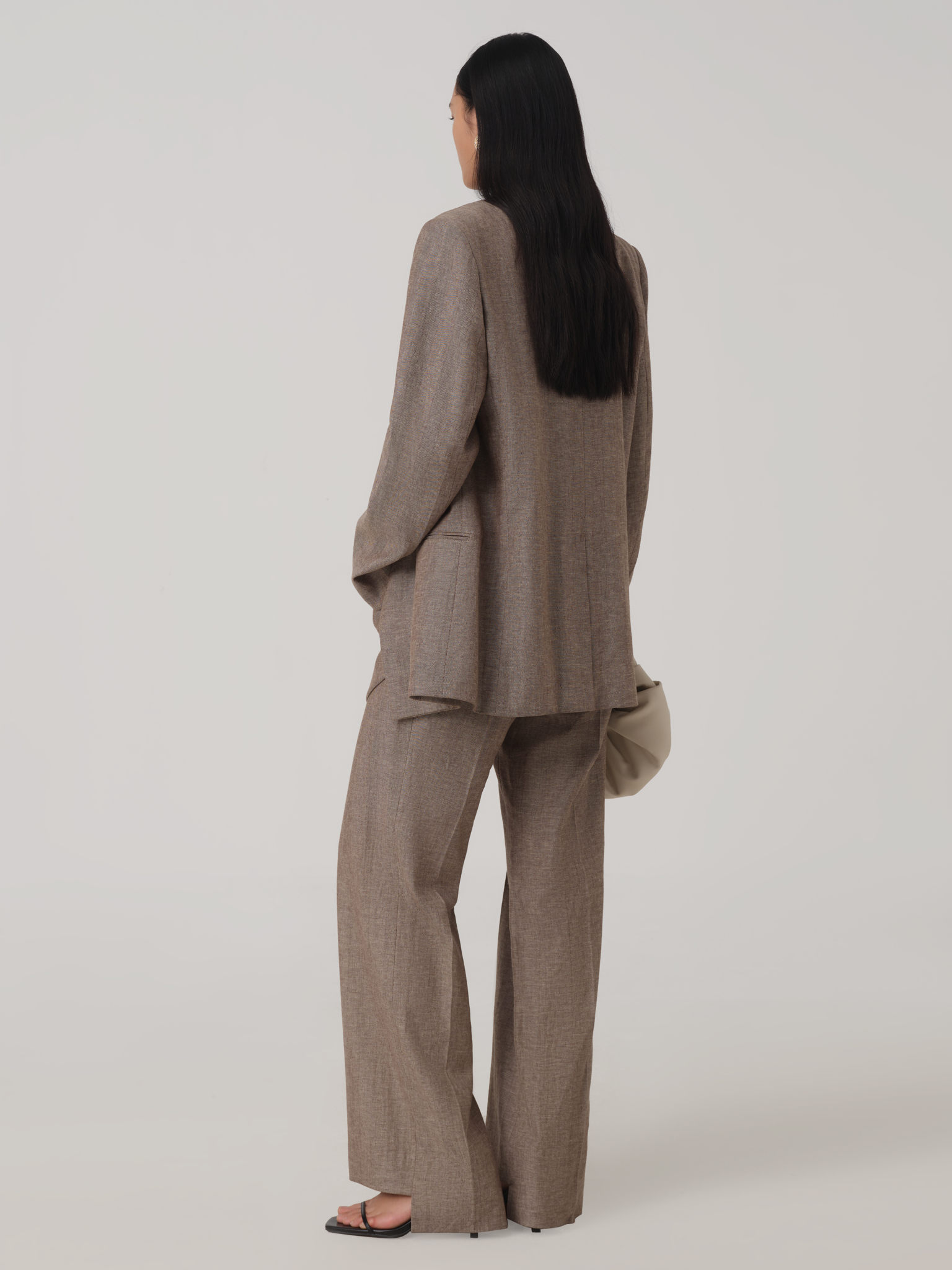 OVERSIZED SINGLE-BREASTED LINEN BLAZER IN MELANGE BROWN
