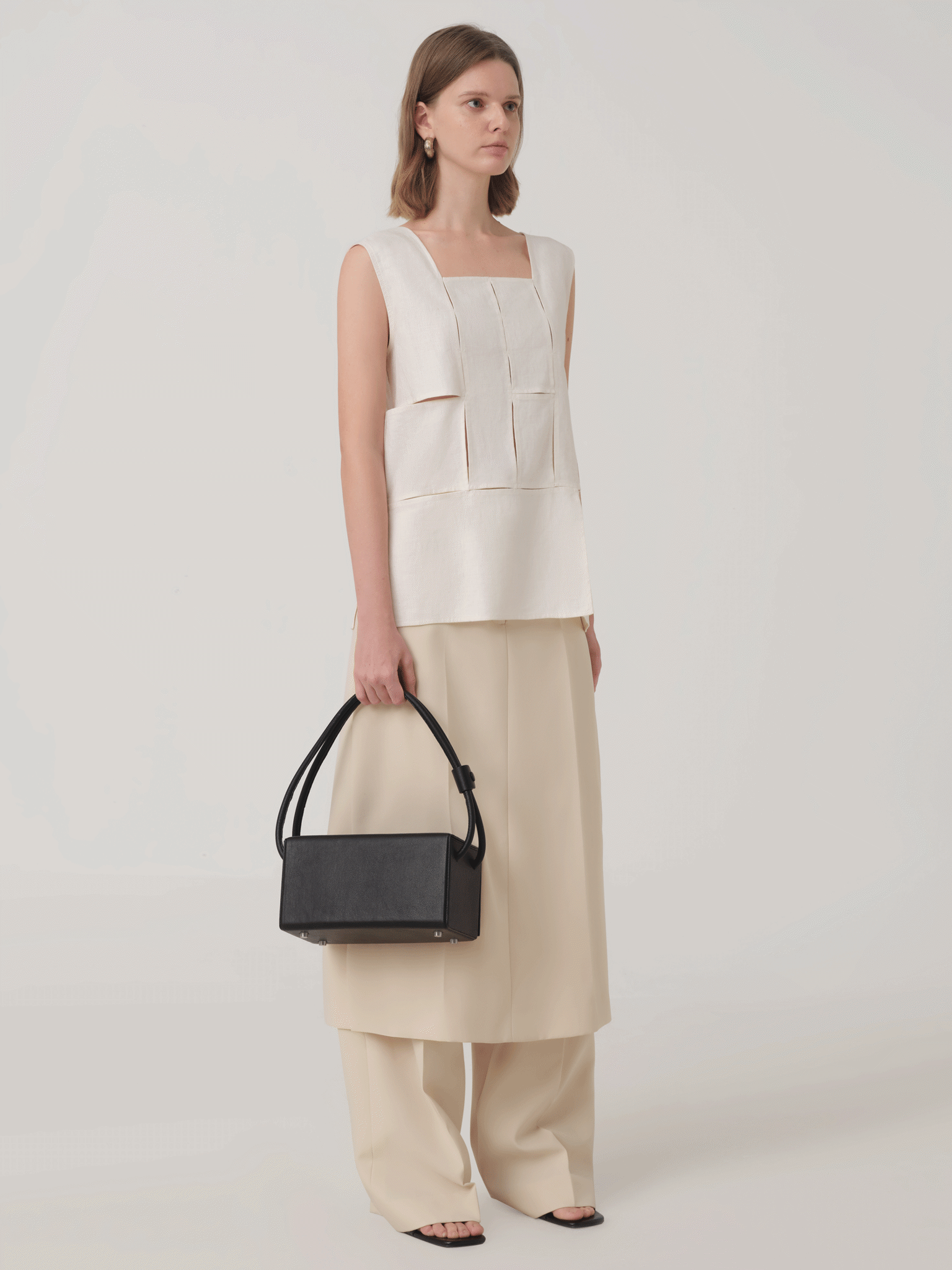 SLEEVELESS CUT-OUT LINEN BLOUSE