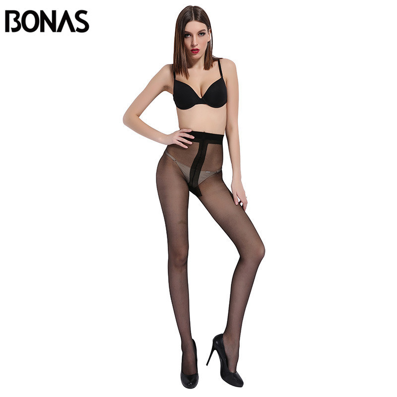 BONAS 15D Tights Women Nylons Thin Pantyhose Tear Resistant Nylon Panty T Crotch Sexy Tight Fashion Female Stockings Europn Size