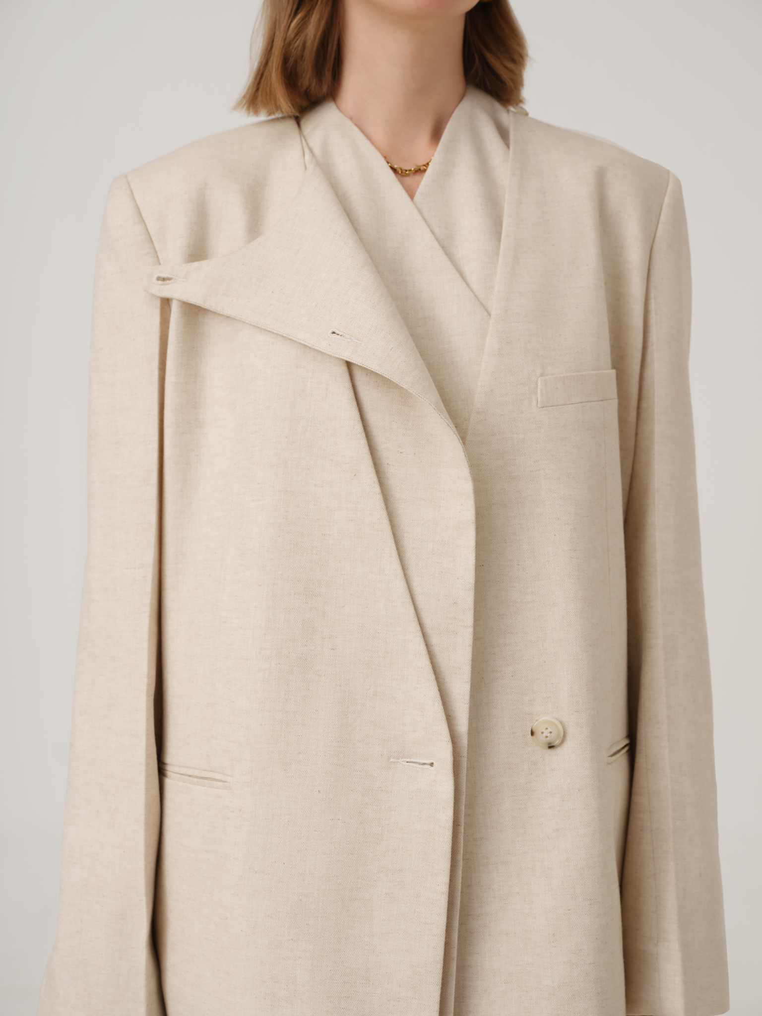 【询盘商品】OVERSIZED SINGLE-BREASTED LINEN BLAZER IN IN BEIGE