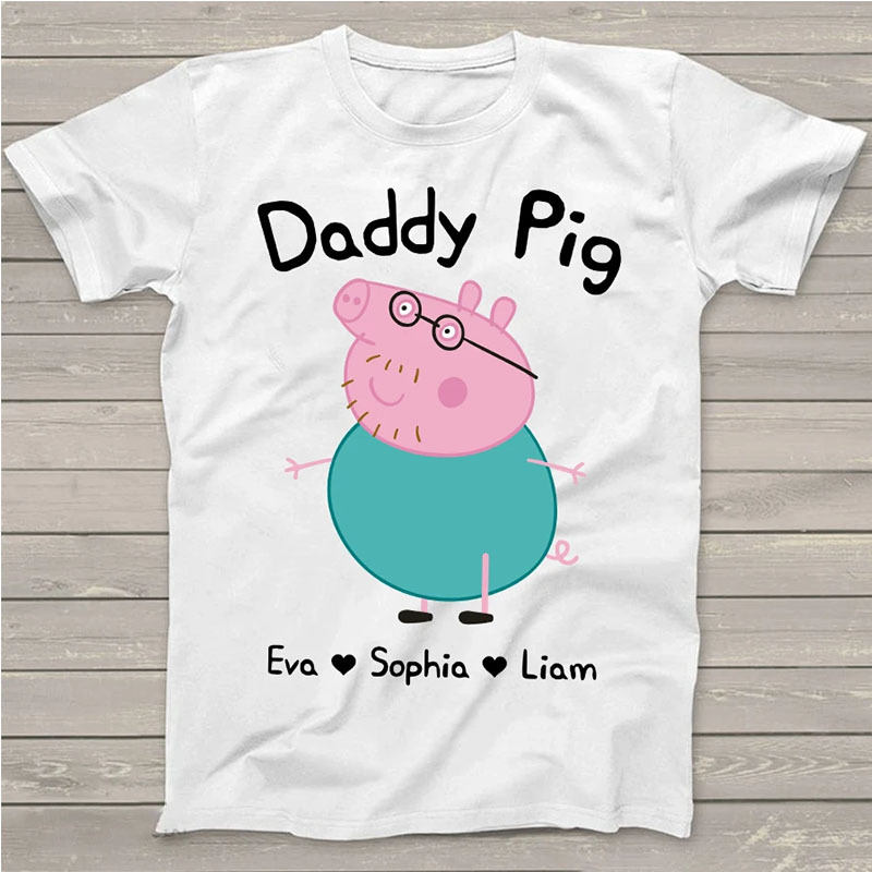 PAMAHEART PERSONALIZED DADDY PIG KIDS NAMES SHIRT